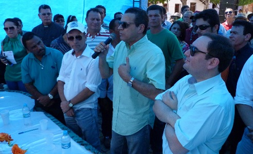 Henrique, Gustavo Fernandes, o diretor estadual do DNOCS, José Eduardo Alves, o diretor geral do DNOCS, Emerson Fernandes e o ex-diretor do DNOCS, Elias Fernandes foram recepcionados com festa pela população e pelas lideranças do município. Em seguida, visitaram o açude público onde ocorreu a solenidade de assinatura da ordem de serviço para a construção da ponte com 4,5 metros de largura e 80 metros de comprimento, que terá a obra iniciada nesta segunda-feira (19).
