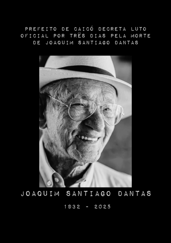 A Prefeitura de Caicó manifesta profundo pesar pela perda e se solidariza com Toinho Santiago, seus irmãos e todos os familiares e amigos de Seu Joaquim, reconhecendo a importância de sua história para a cidade.
