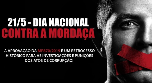Em reação à tentativa de impedir a Receita Federal de atuar no combate a crimes como lavagem de dinheiro e corrupção, Auditores-Fiscais de todo o Brasil promovem nesta terça-feira (21) o Dia Nacional Contra a Mordaça na Receita Federal, com manifestações em várias cidades do país. O protesto tem por objetivo chamar a atenção da sociedade, do poder público e, principalmente, de deputados e senadores para os riscos de aprovar a Medida Provisória 870/2019 com a previsão de limitações nas competências dos Auditores-Fiscais.