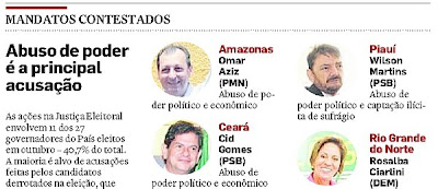Cassar governador não é mais tabu para o Judiciário. Em 2009, o Tribunal Superior Eleitoral (TSE) determinou a perda de mandato de três governadores: Jackson Lago (Maranhão), Cássio Cunha Lima (Paraíba) e Marcelo Miranda (Tocantins).