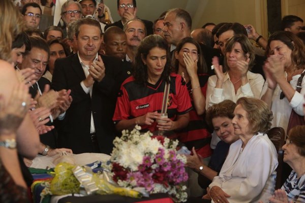 24/07/2014. Crédito: Teresa Maia/DP/D.A Press. Brasil. Recife – PE. A presidente da República Dilma Rousseff e o candidato à presidência Eduaro Campos comparecem ao velório do escritor Ariano Suassuna no Palácio das Princesas. O escritor faleceu após sofrer um acidente vascular cerebral – AVC hemorrágico e uma parada cardíaca.